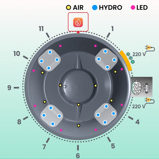 Balia ogrodowa | piec na drewno Horizon™ | filtr piaskowy z lampą UV-C | 16 dysz hydromasażowych | dla 4–8 osób