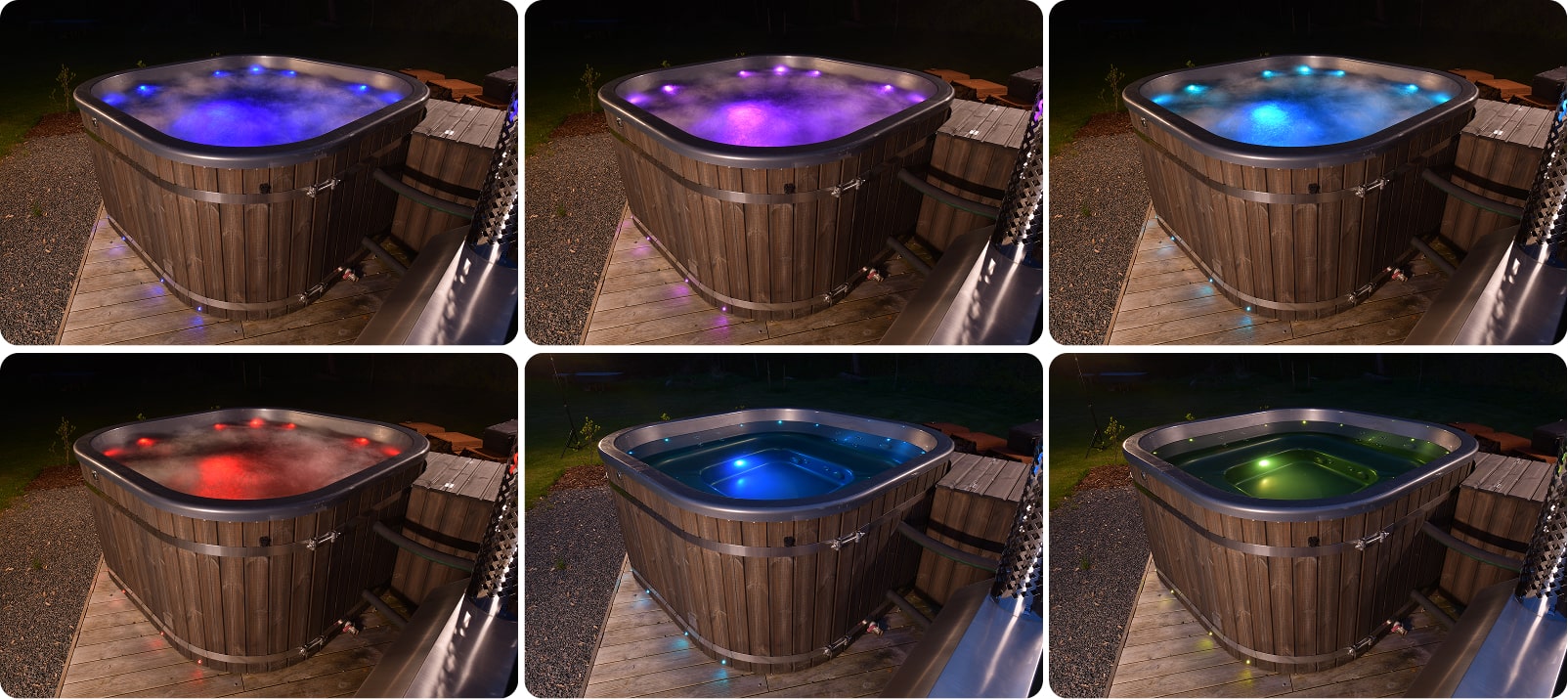 Premium look & feel — LED lighting adds elegance and enhances the luxury feel of your wood-fired hot tub.