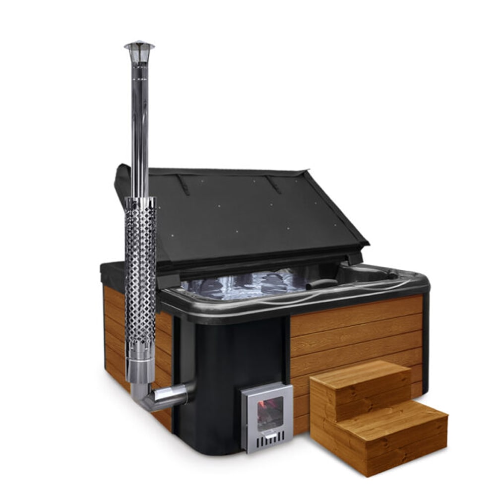 Modern square wood-fired hot tubs resemble traditional Jacuzzi models. Their main advantage is more legroom at the bottom. They also have a more modern look, but lose the cozy, circular seating arrangement. So it's worth thinking about what matters most to you—comfort, aesthetics, or space efficiency.