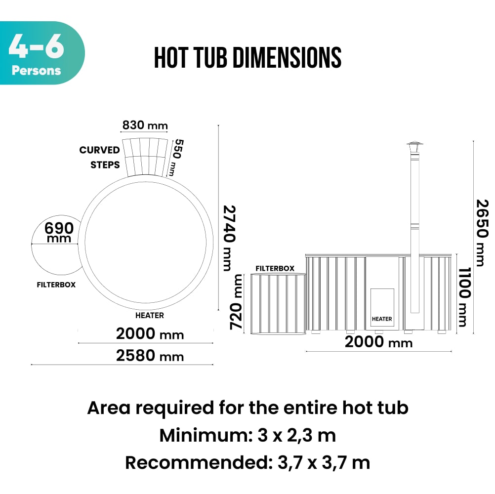 All Inclusive Wood Fired Hot Tub with Jets | Verta™ stove, Premium sand filter system | 24 jets | 4–6 seater