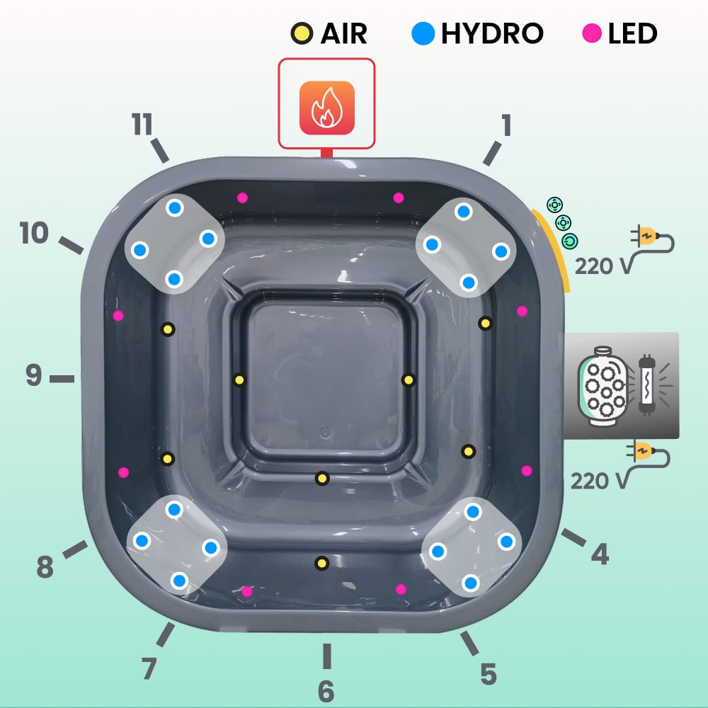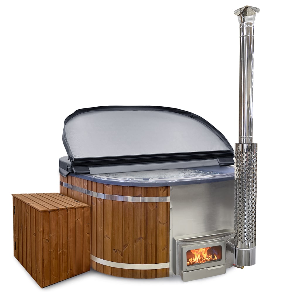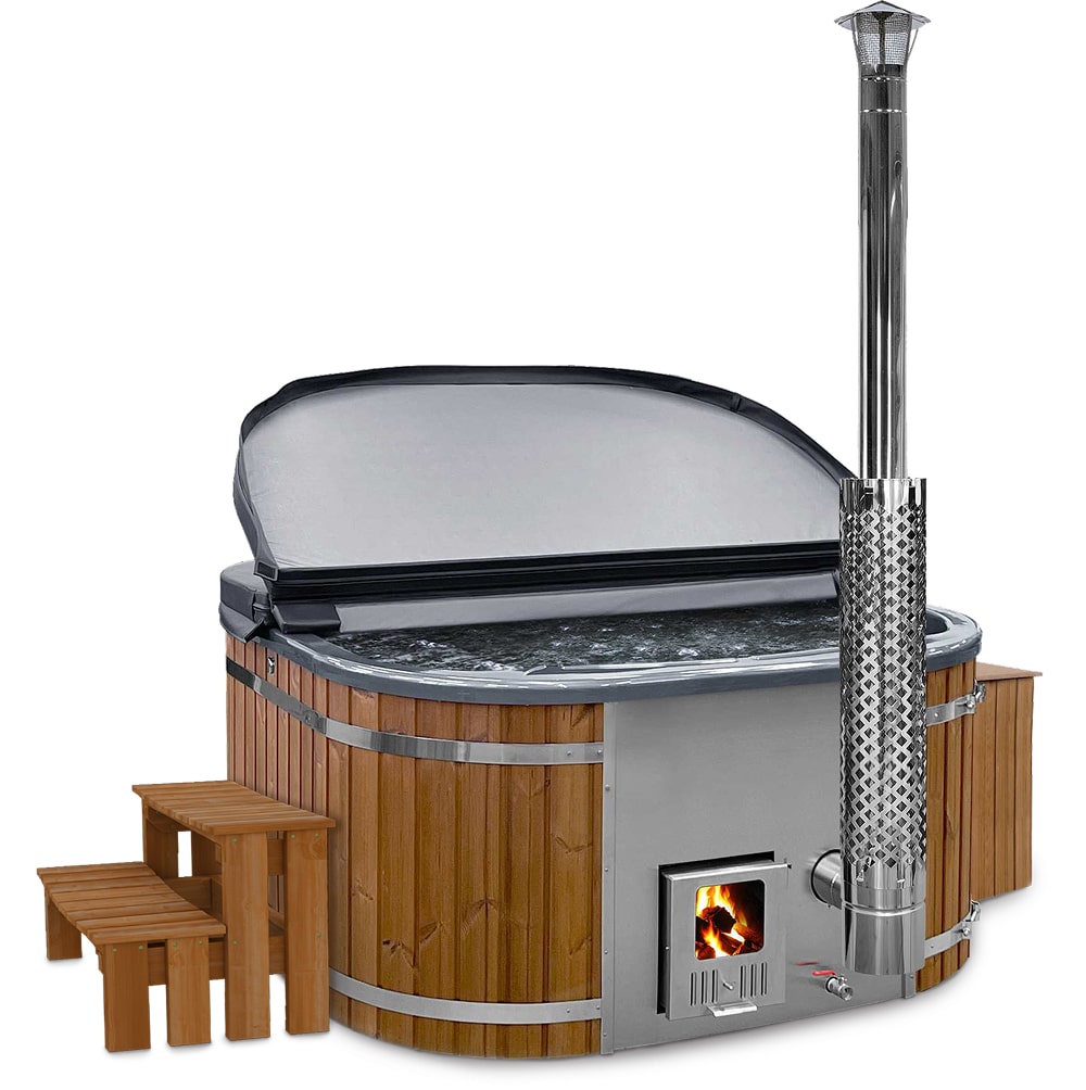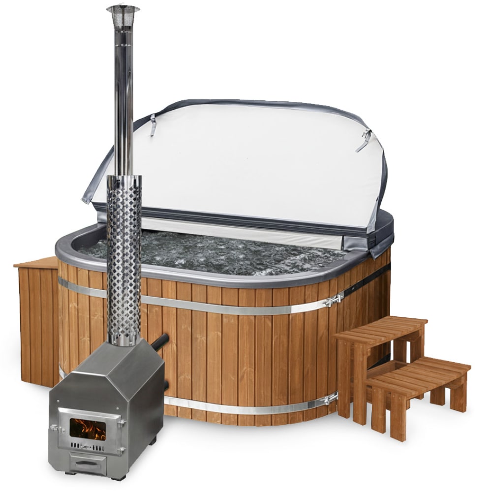 Kwadratowa balia ogrodowa dla 4–6 osób z wbudowanym piecem