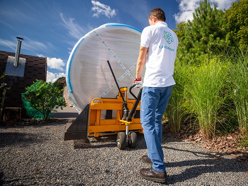 Poprosimy Cię o przesłanie zdjęć i filmów miejsca, w którym ma stanąć balia, oraz planowanej trasy jej przenoszenia. Zostaniesz poproszony o podanie dokładnych wymiarów przejść i ścieżek, którymi balia będzie przenoszona do ogrodu.