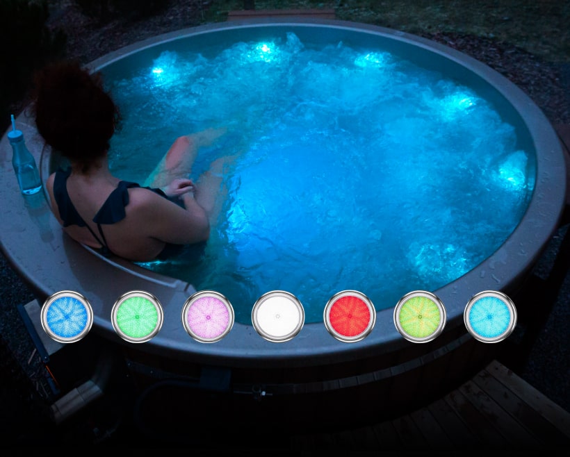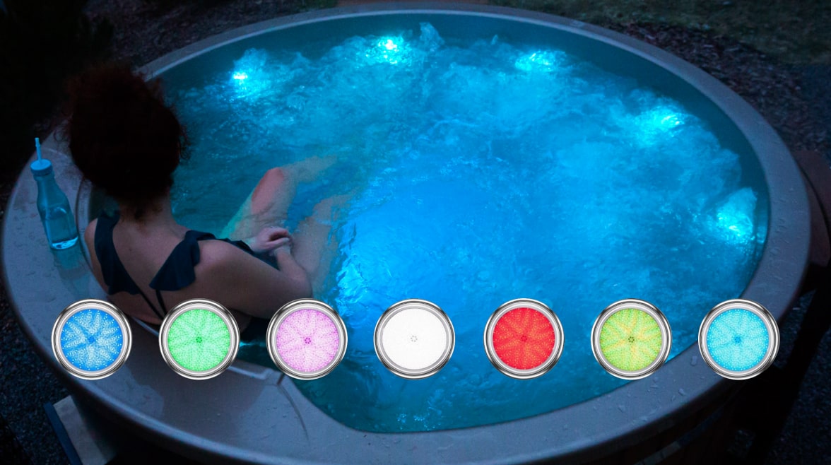 Zobacz, jak wygląda duże pojedyncze LED — zmieniające kolory pod wodą wieczorem oraz w ciągu dnia, gdy balia jest pusta. Wielkie podziękowania dla naszego klienta G. Key z Wielkiej Brytanii za udostępnienie filmu!