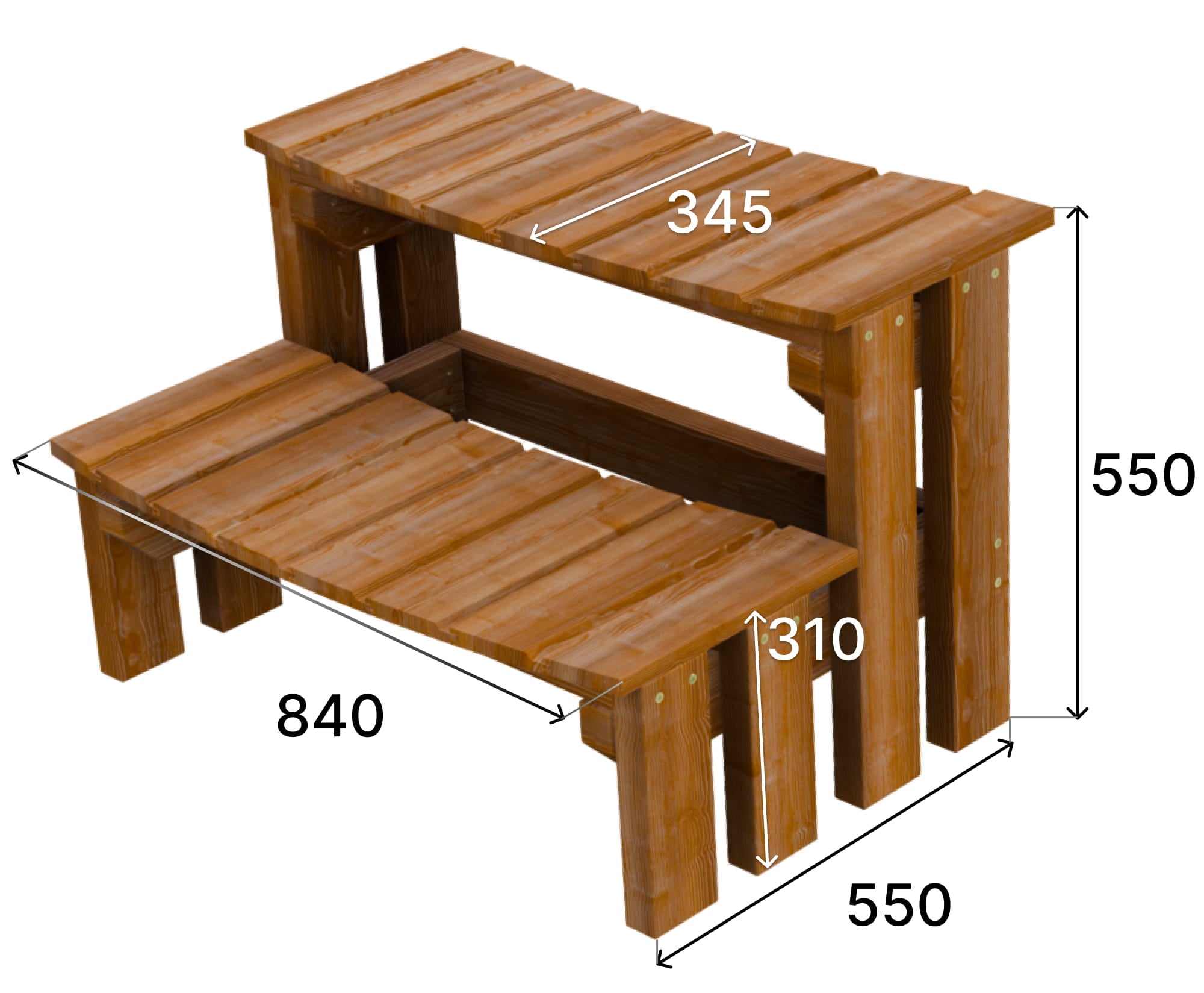 W pełni obudowane moduły schodów — układ wokół balii ogrodowej i wymiary