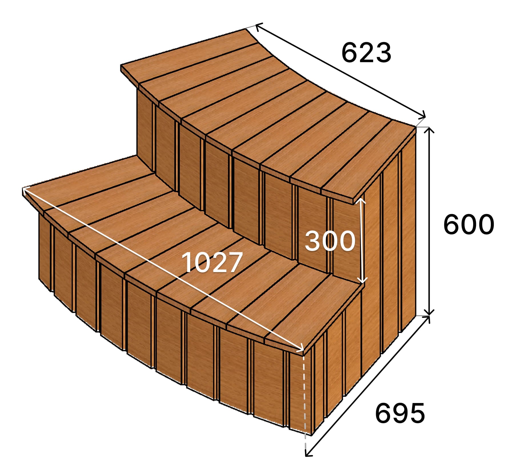 W pełni obudowane, zaokrąglone schody do balii ogrodowej