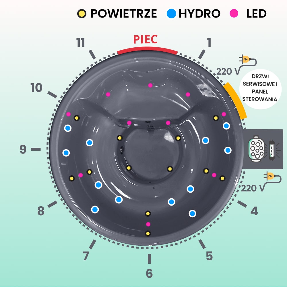 • System masażu powietrznego, 12 dysz, 0,7 kW (2340 zł)