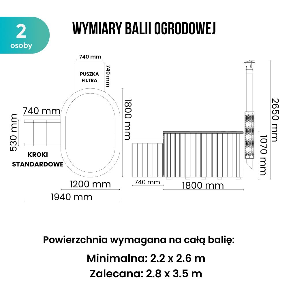 Balia ogrodowa Ofuro | Wkład z włókna szklanego | Zintegrowany piec | 2 osoby | Konfigurowalna