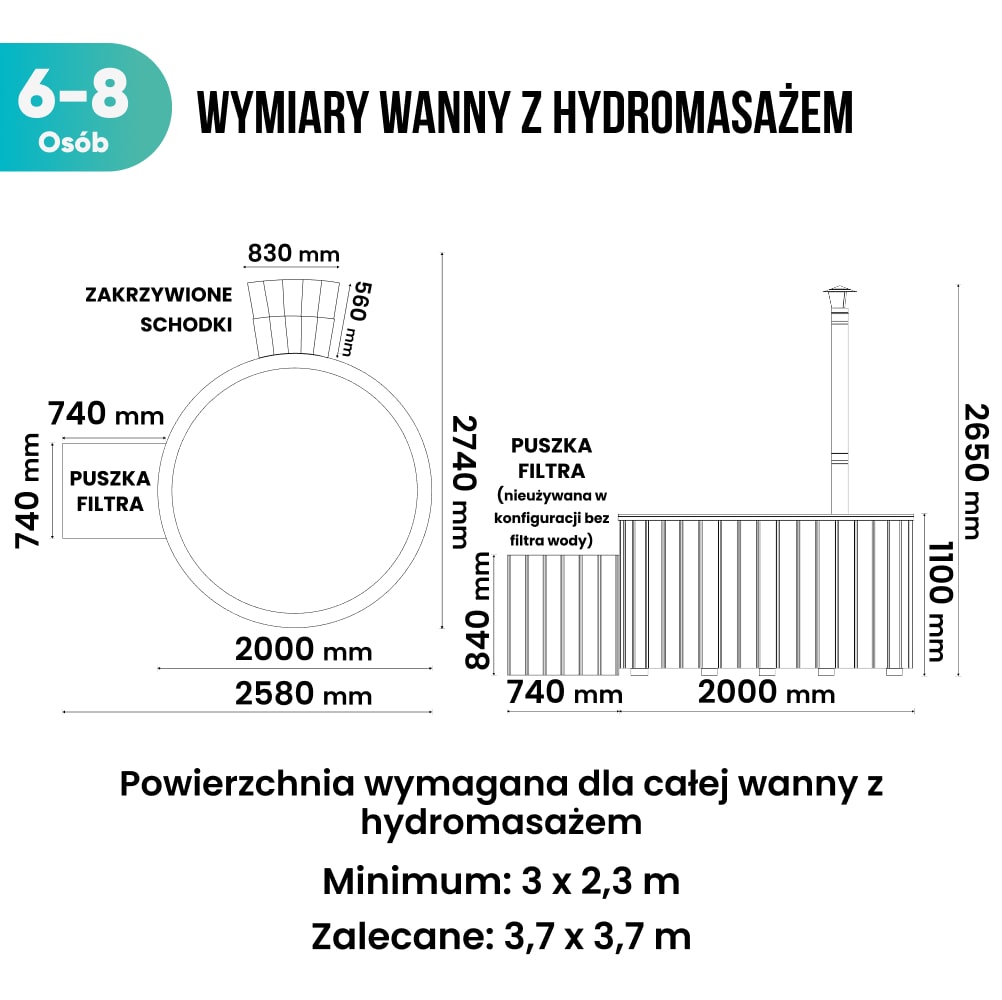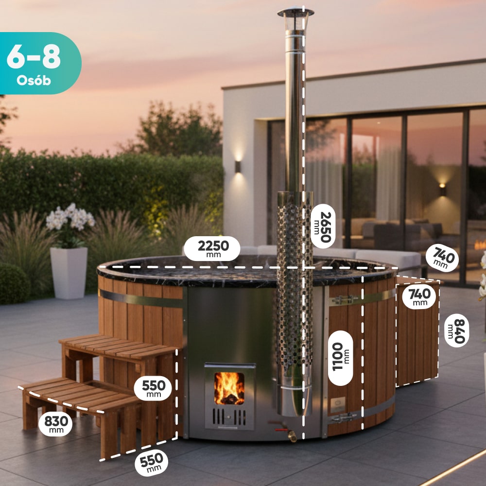 Balia ogrodowa kwadratowa | Kolory metaliczne | Zewnętrzny piec | 6-8 osób | Konfigurowalna