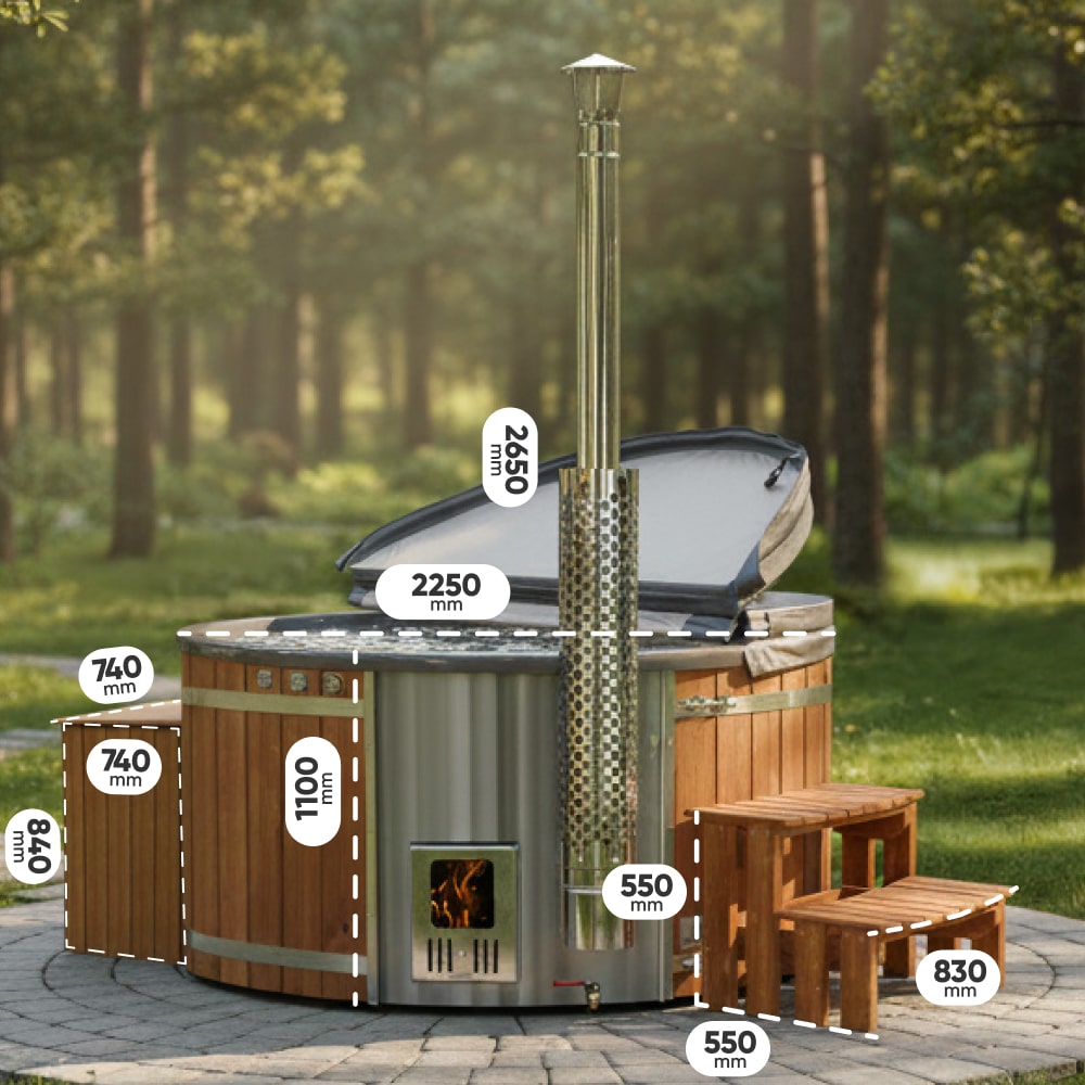 Balia ogrodowa | piec na drewno Verta™ | filtr piaskowy z lampą UV-C | 16 dysz hydromasażowych | dla 4–6 osób