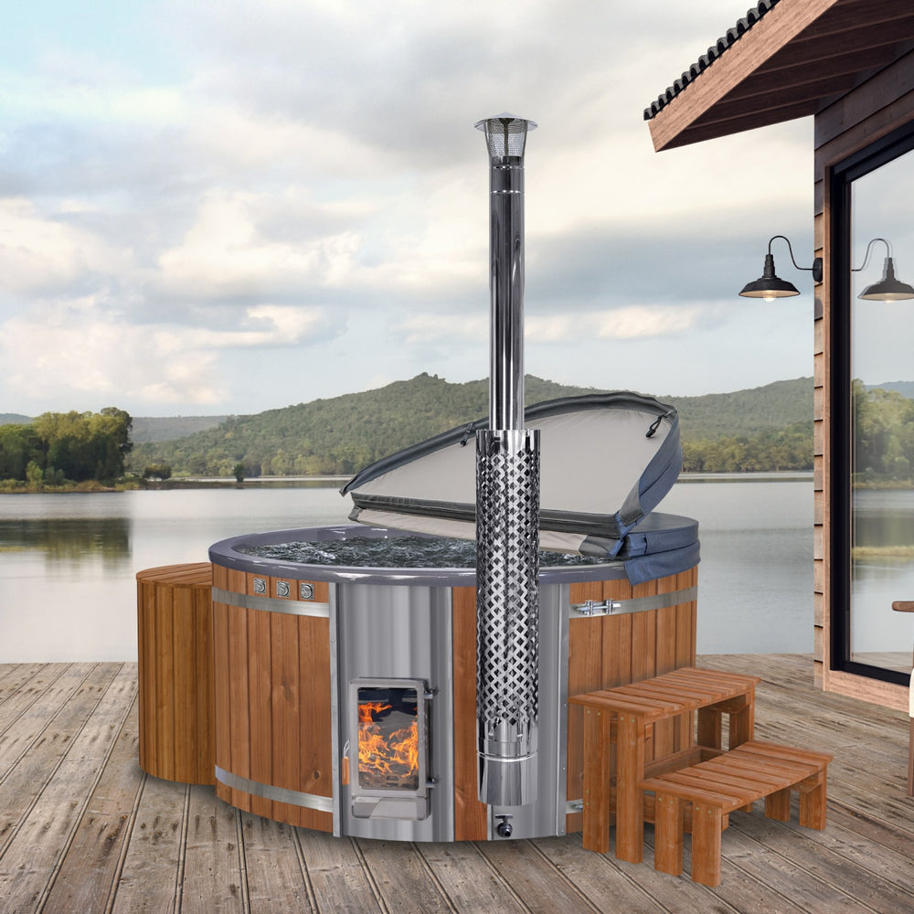 - Wbudowany piec na drewno ze stali nierdzewnej AISI 316 z 2-metrowym kominem (3821 zł)