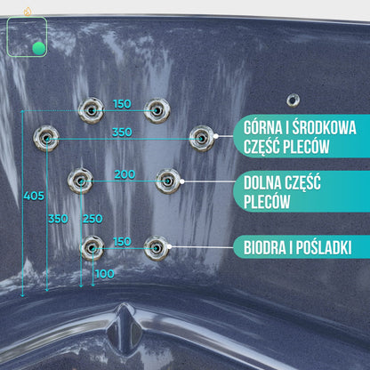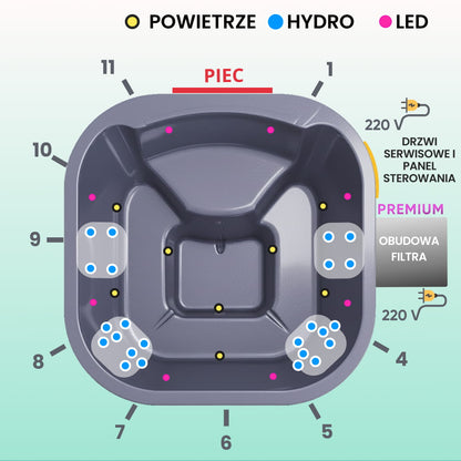 Kwadratowa balia ogrodowa dla 4–6 osób z Premium filtrem | 24 dysz hydro,Verta piec