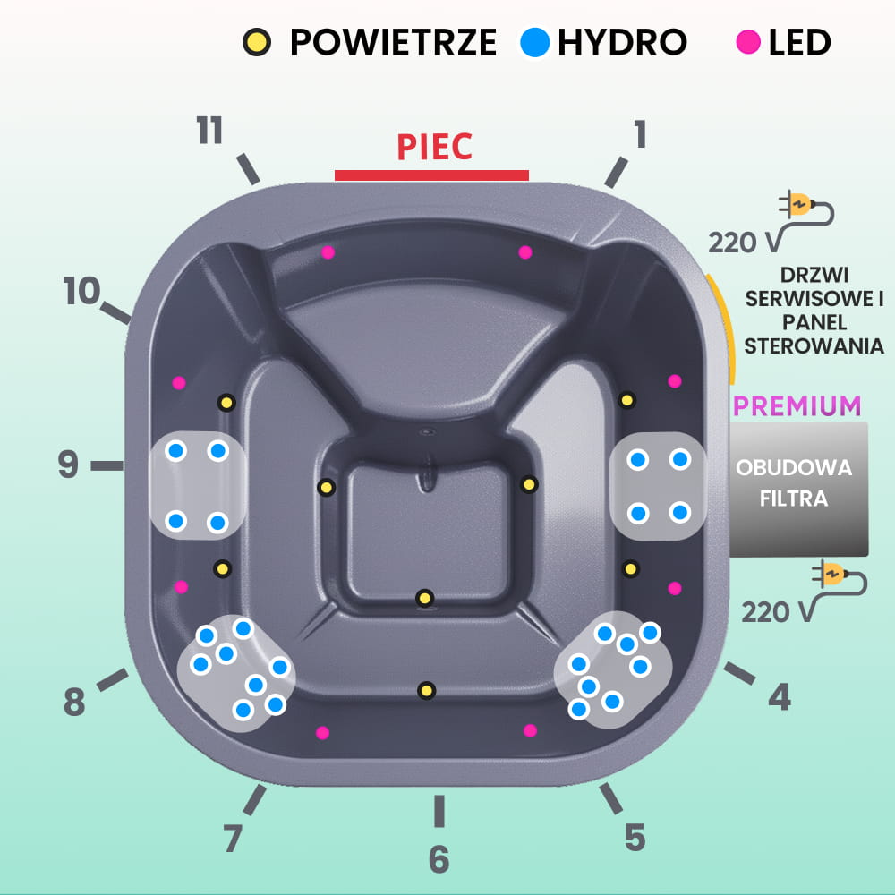 - System hydromasażu, 24 dysze, 4 pompy (4036 zł)