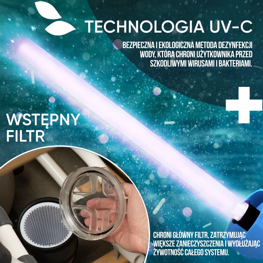 - Premium filtr piaskowy z kulkami filtracyjnymi i obudową filtracyjną oraz systemem UV-C Blue Lagoon i grzałką elektryczną 3 kW (7643 zł)