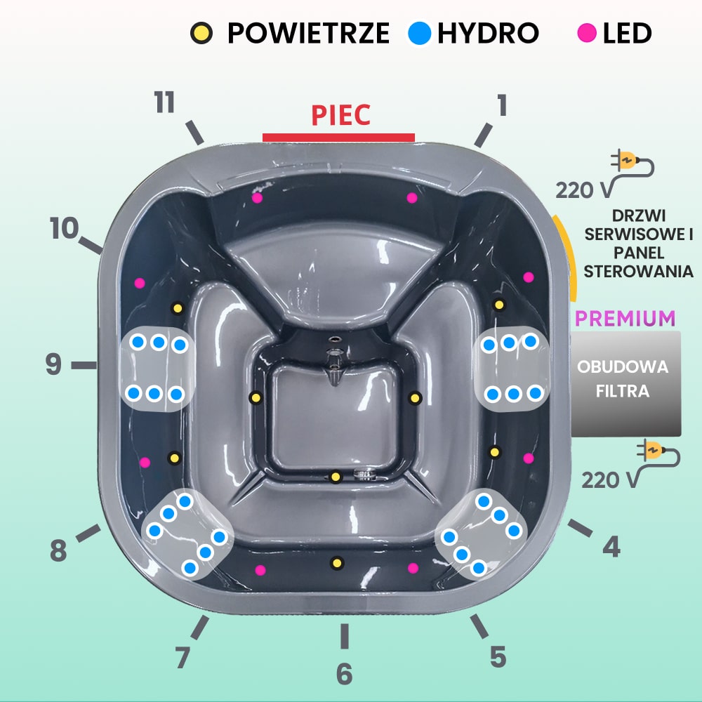 - System hydromasażu, 24 dysze. Dwie pompy, każda o mocy 1,5 kW (4036 zł)