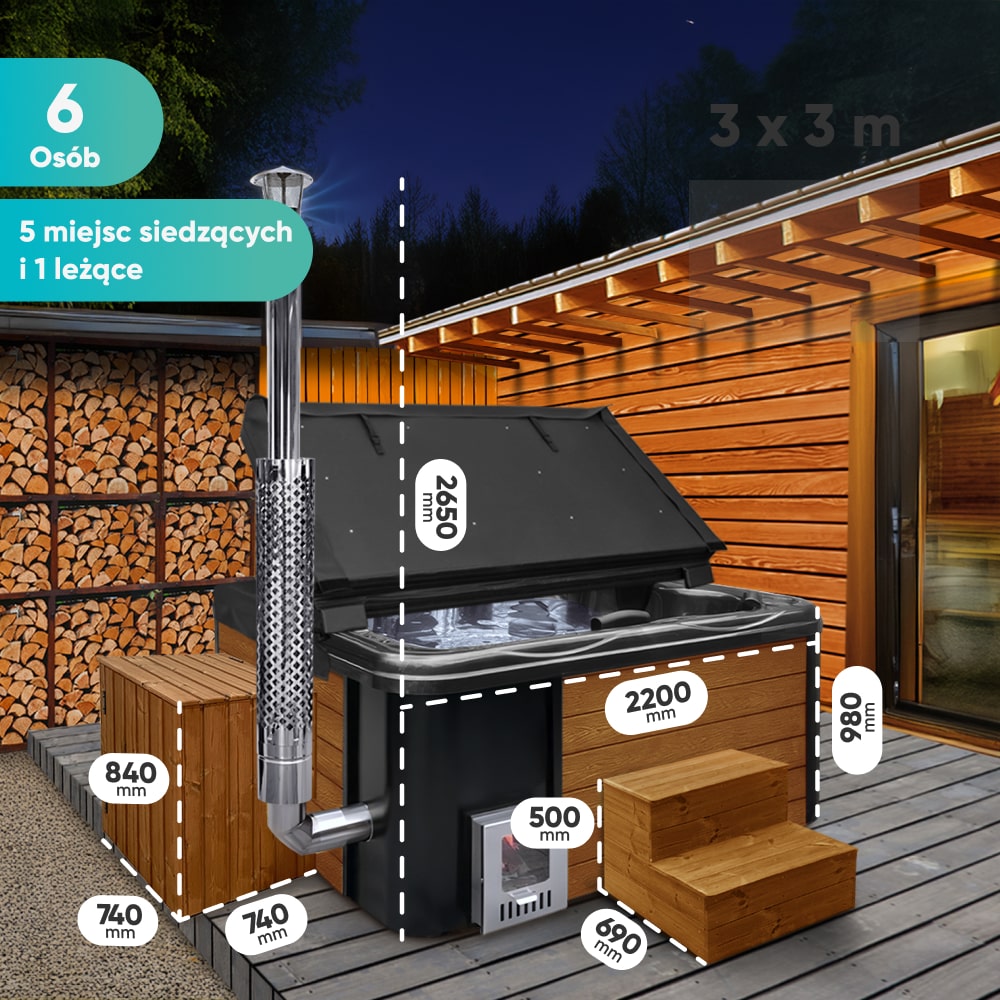 Balia ogrodowa kwadratowa | Kolory metaliczne | Zewnętrzny piec | 6-8 osób | Konfigurowalna