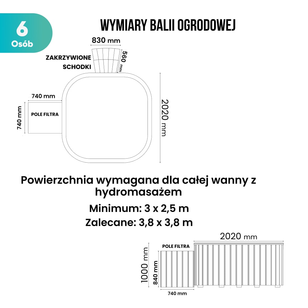 Kwadratowa balia ogrodowa z premium filtrem piaskowym | Najlepsza konfiguracja