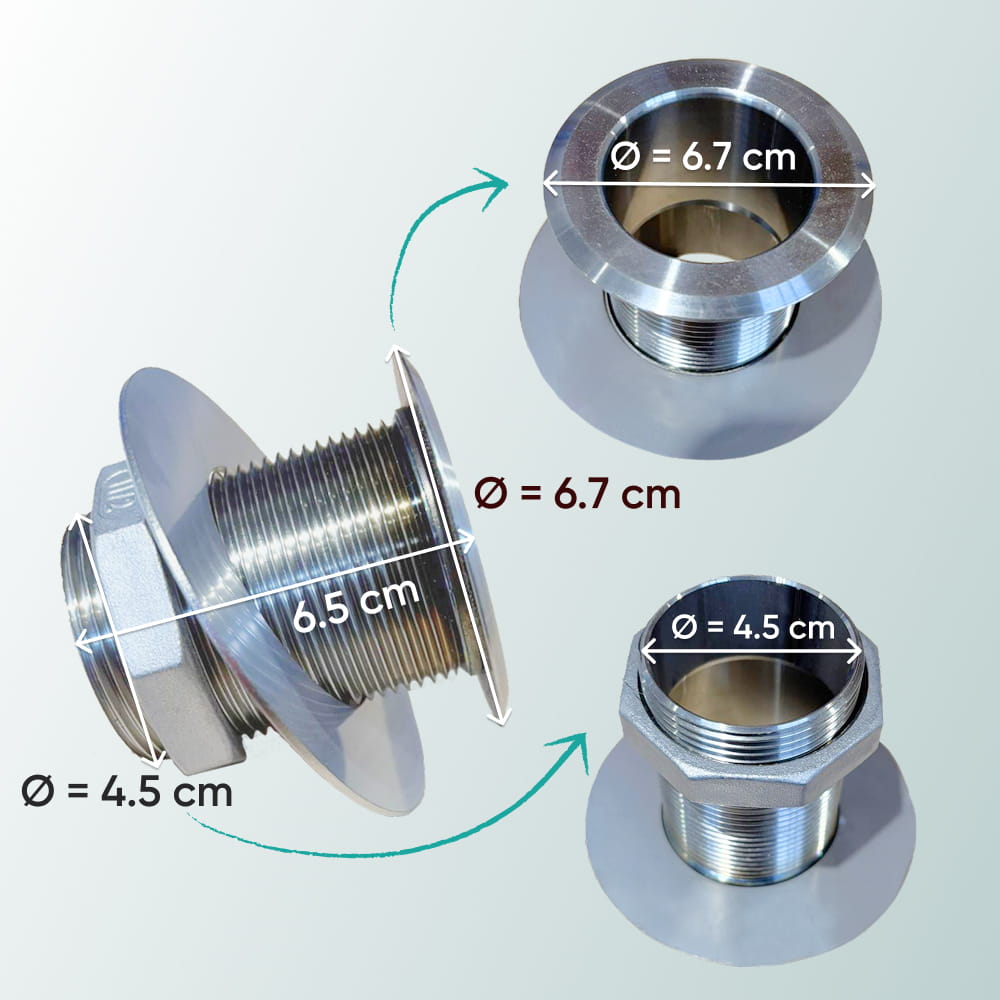 - 2 x przepusty ze stali nierdzewnej AISI 304