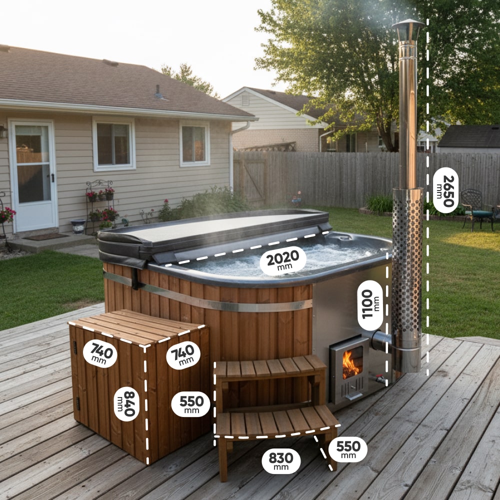 Balia ogrodowa | piec na drewno Verta™ | filtr piaskowy z lampą UV-C | 16 dysz hydromasażowych | dla 4–6 osób