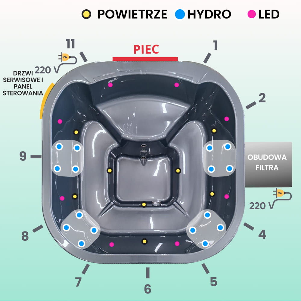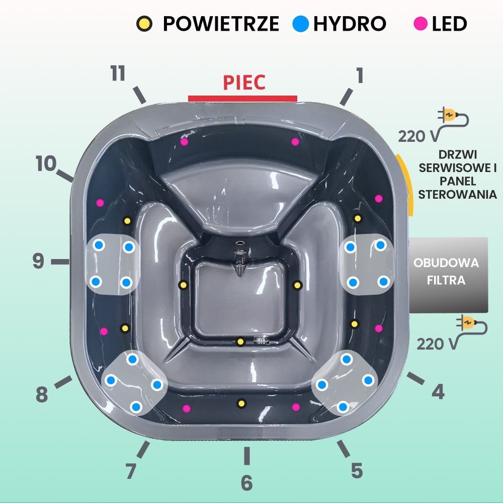 - System masażu wodnego, 16 dysz, 1,1 kW (3395 zł)